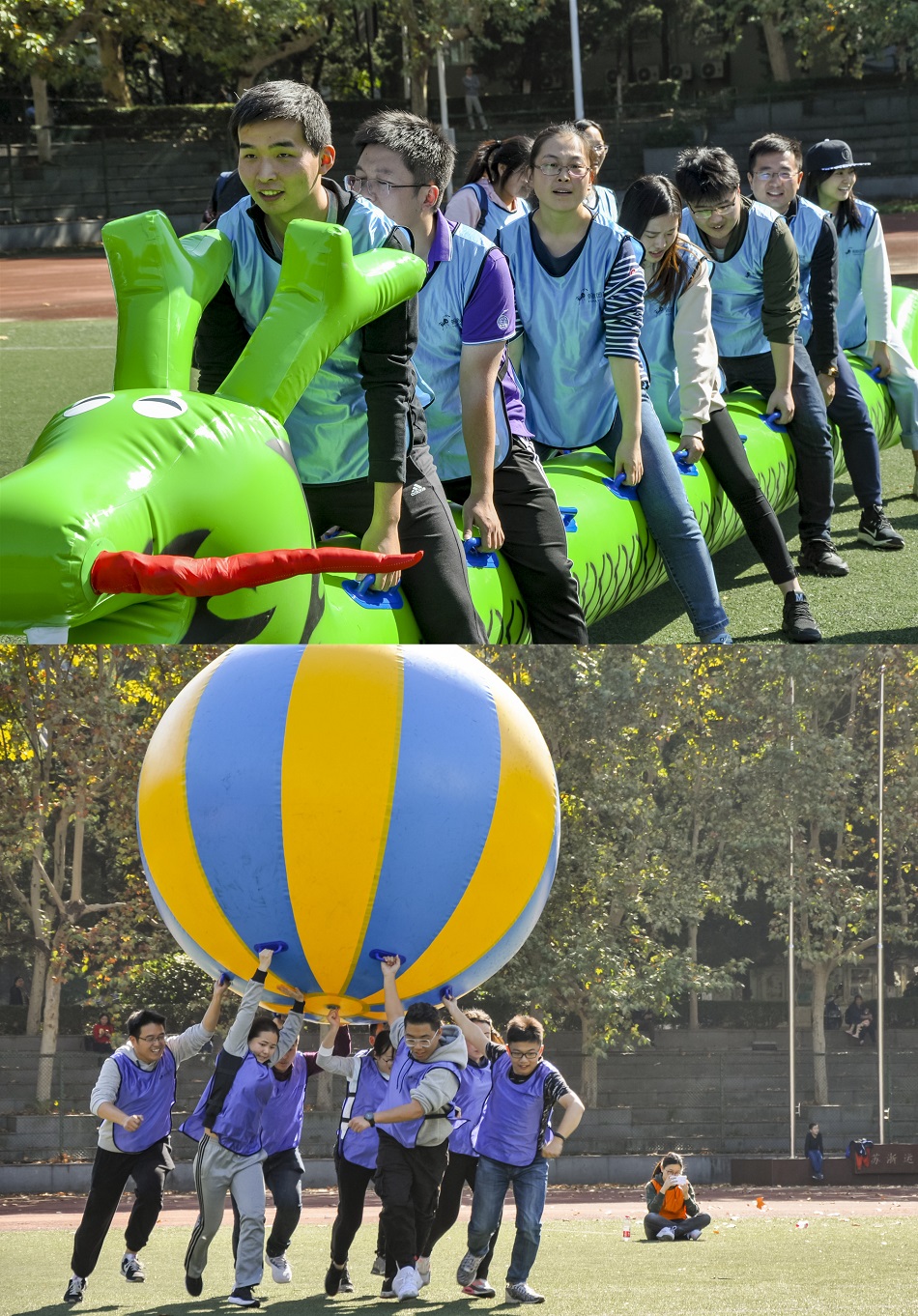熱身運動后,開始了運動會的趣味游戲比賽環節,各組隊員興致勃勃,反復練習研究策略,既要跑得快,又要抓的穩,還不能落下任何一名隊友!展示了各團隊之間的團結與智慧。