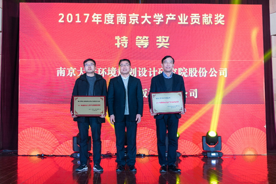 該獎項是南京大學科技產業最高獎項,充分詮釋了我院為南京大學科技產業發展、環境學科的學科建設、人才培養以及服務社會做出的杰出貢獻。南京大學黨委副書記薛海林為陸朝陽總經理頒發了獎牌,并在講話中對我院的工作給予了高度評價。