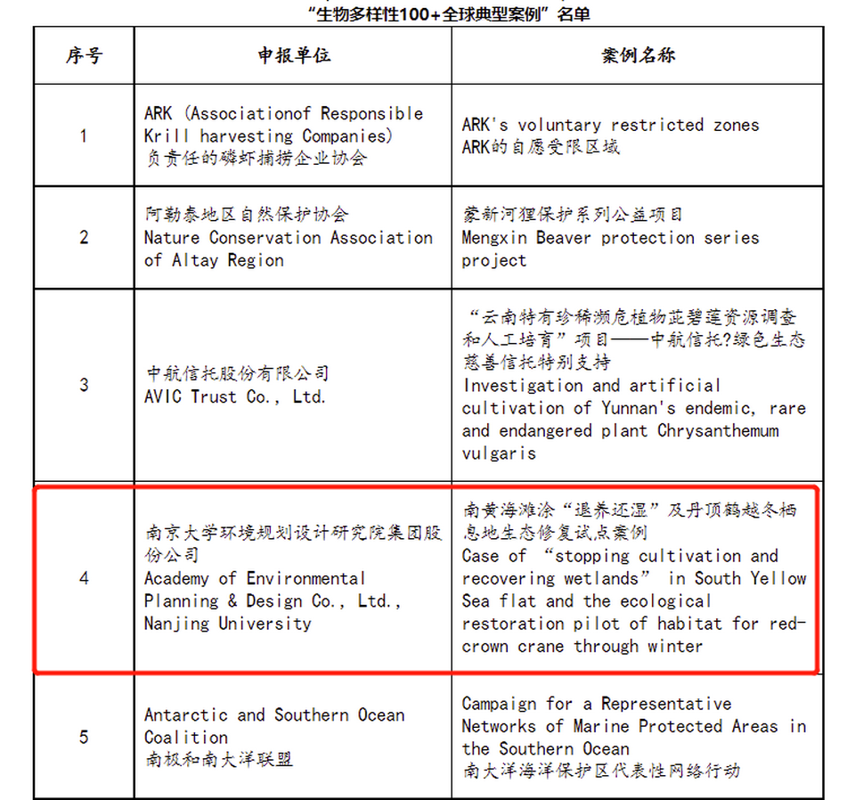 南大環(huán)規(guī)院項(xiàng)目入選聯(lián)合國“生物多樣性100+全球典型案例”