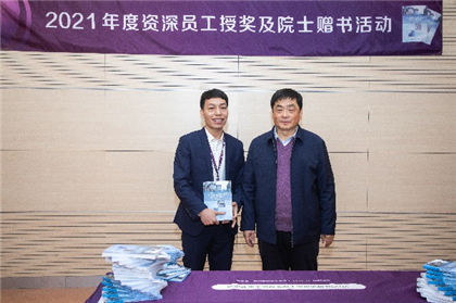 首先,任洪強院士的學術報告《應對雙碳戰略的水污染防治產業發展思考》拉開了整場活動的序幕。任院士高屋建瓴,闡述在雙碳背景下污水處理廠邁向碳中和的創新路徑,列舉分析國內外先進案例,指出制約我國污水處理廠邁向碳中和的四項制約因素,并提出三大對策推動水污染防治產業的高質量發展。講座深入淺出,邏輯清晰,引起強烈反響,大家踴躍提問,互動熱烈。講座后又舉行了“2021年度資深員工授獎及院士贈書儀式”,任洪強院士親自為集團五年資深員工代表贈送了親筆簽名的學術著作。