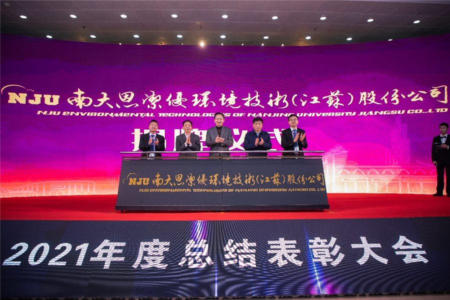 之后,集團子公司“南大恩潔優環境技術(江蘇)股份公司”舉行了揭牌儀式,鄒亞軍副校長、任洪強院士、尹建康董事長、陸朝陽總裁、徐遵主總經理共同為新公司揭牌。