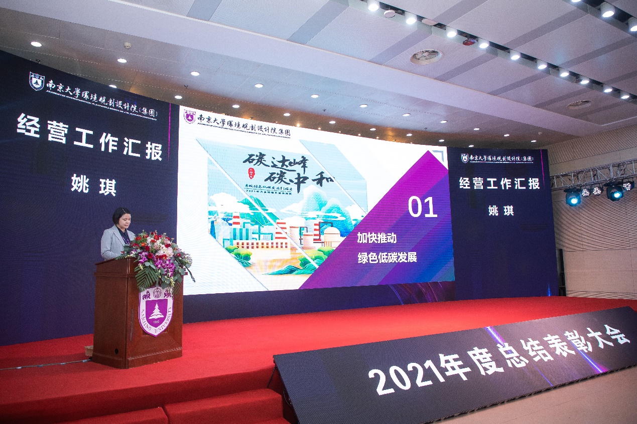 隨后,集團副總裁姚琪代表集團管理層向大家匯報了2021年度集團經營工作情況。她在匯報中指出,圍繞深入打好污染防治攻堅戰的大目標,2021年全體員工以高昂的斗志,飽滿的熱情,開拓創新、奮力拼搏,用智慧和技術推動了客戶和社會的可持續發展。