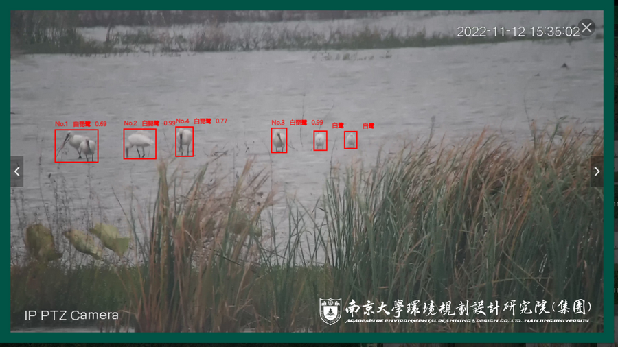 本次抓拍并識別到白琵鷺的南大環規院鳥類智能監測系統為南大環規院牽頭自主設計、聯合國內人工智能領域排名第一的高校——南京大學共同研發的系列人工智能生態監測產品之一。系統基于視頻檢測及識別等行業領先的人工智能技術,主攻濕地水鳥識別監測與數據統計分析,基于南大環規院長期在我國長三角地區開展生物多樣性調查工作積累的鳥類圖片數據庫進行系統識別準確性訓練,水鳥識別準確率高、計數精確、珍稀瀕危物種識別后可自動上報提示。此外,系統有著強大的物聯及拓展能力,能夠便捷的與各類視頻監控系統相融合,極大的節省人力監測成本和系統建設成本。在當前全省掀起開展生物多樣性觀測網絡建設大潮的進程中,人工智能生態監測系統必將成為輔助人力監測的利器,南大環規院也將致力于研發更多的人工智能生態監測產品,助力全省生物多樣性觀測網絡更先進、更準確、更智能。
