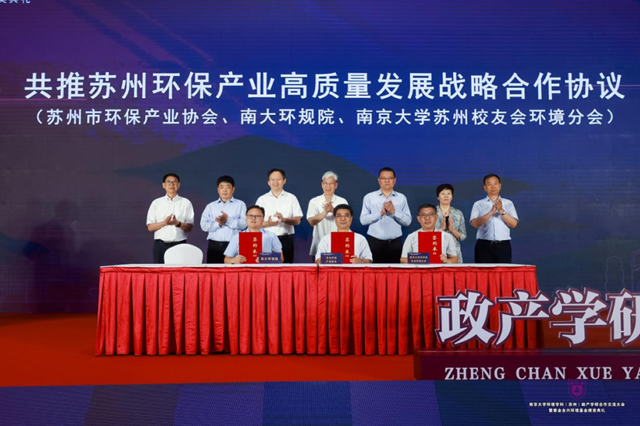 蘇州市委常委、副市長唐曉東在致辭中指出,蘇州將充分用好政產(chǎn)學(xué)研合作交流平臺,探索新機(jī)制、新模式,圍繞生態(tài)環(huán)境保護(hù)、產(chǎn)業(yè)發(fā)展、成果轉(zhuǎn)化等方面重點(diǎn)發(fā)力,加強(qiáng)黨建聯(lián)盟、多方合作,把政府的組織協(xié)調(diào)優(yōu)勢、南大的學(xué)術(shù)研究實(shí)力和市場的產(chǎn)業(yè)創(chuàng)新活力充分結(jié)合,不斷提升高等教育對產(chǎn)業(yè)發(fā)展和城市發(fā)展的引領(lǐng)支撐作用,進(jìn)一步推進(jìn)校地深度融合,合力推動生態(tài)文明建設(shè)和綠色低碳產(chǎn)業(yè)發(fā)展不斷邁上新臺階。