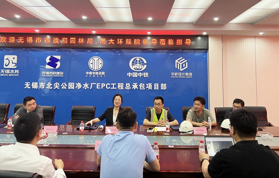 為切實踐行習近平生態文明思想,充分發揮基層黨建引領作用,助推黨建與業務工作緊密結合,5月21日,南大環規院黨委第六黨支部赴無錫市北尖凈水廠EPC工程現場開展主題活動,并與無錫市市政和園林局、無錫市水務集團有限公司及項目部深入交流。